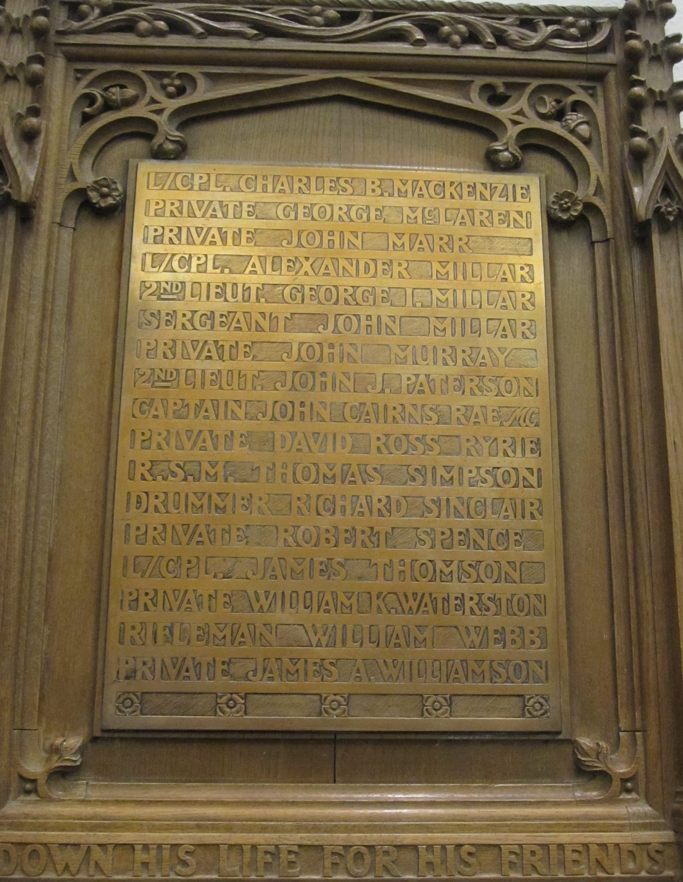 To the Glory of God and in grateful remembrance of 153 members and adherents of this Congregation who served in the Great War 1914 – 1918 and especially of those whose names are here recorded who died that we might live.