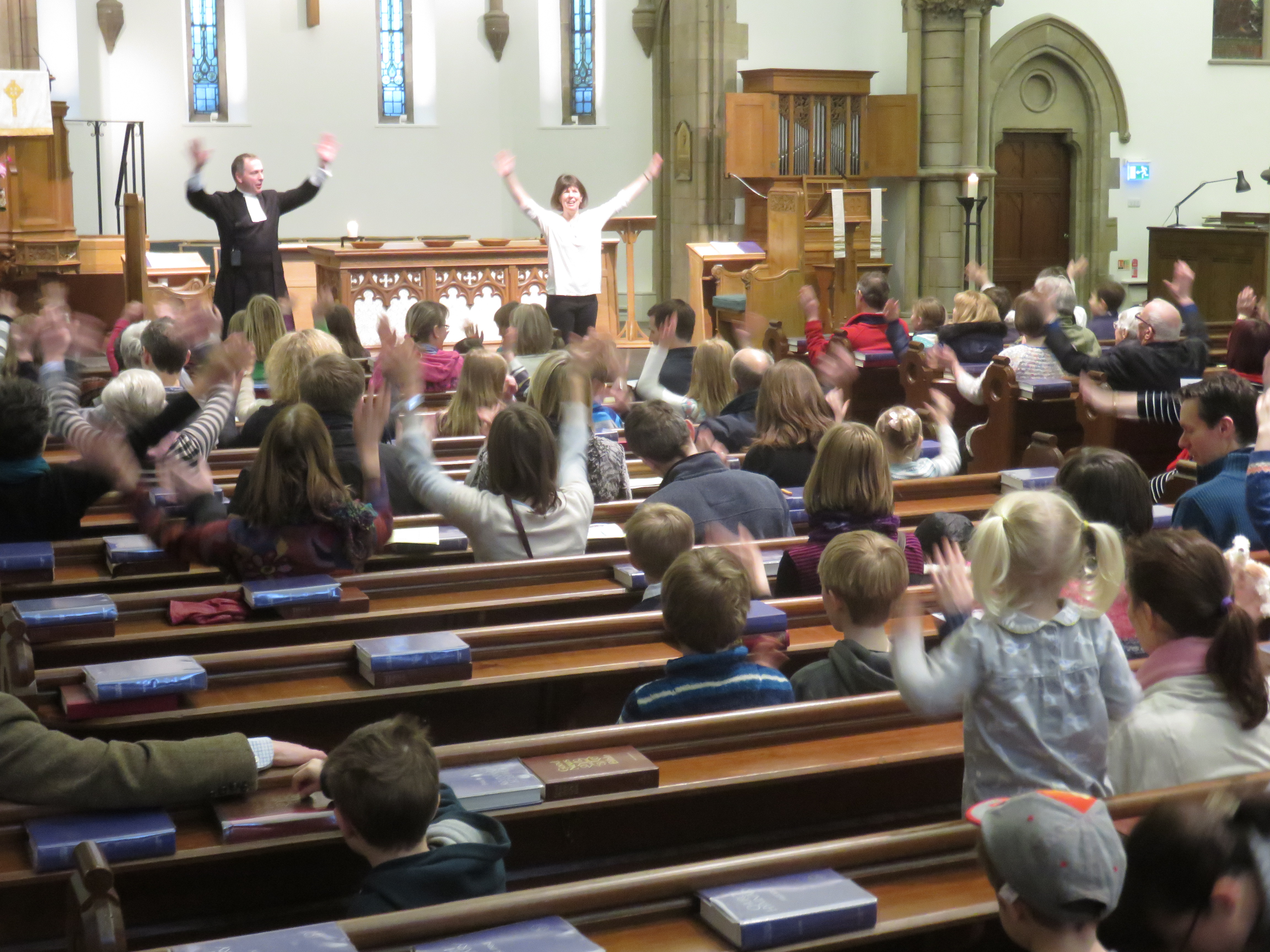 ‘Go well and safely the Lord is ever with you’, again in three parts. Thus we returned to the Sanctuary ready to use our new found skills in a celebratory mini-service under our minister’s guidance. Who would have thought all that was possible in just over an hour? Surely it was God moving, bringing laughter and fun into an amazing act of worship.